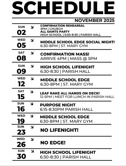 Meet on Wednesdays in the St. Mary School Gym from 6:30 - 8:00 pm.